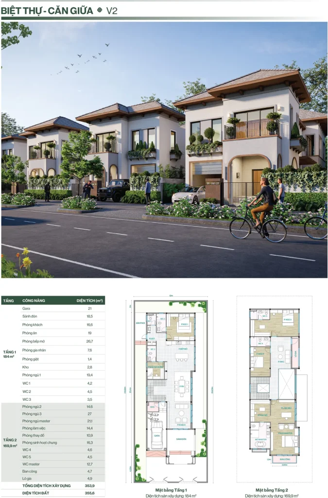 • Biệt thự song lập: 150 – 480 m²