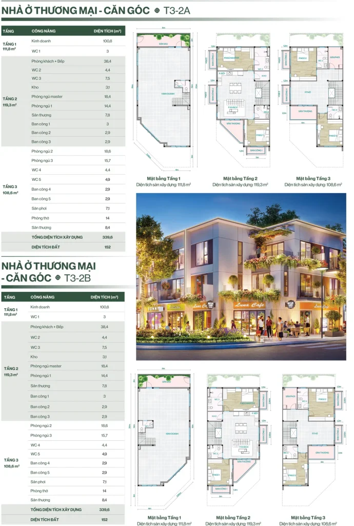 • Shophouse: 120 – 150 m²