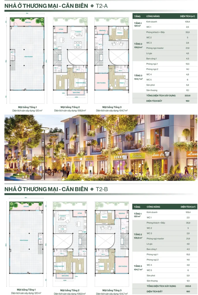 • Nhà phố liền kề: 80 – 162 m²